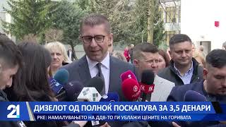ТВ 21 | пред 13 часаДизелот од полноќ поскапува за 3,5 денари – РКЕ: Намалувањето на ДДВ-то ги ублажи цените на горивата