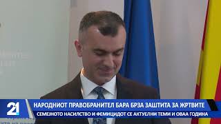 ТВ 21 | пред еден часНародниот правобранител бара брза заштита за жртвите – семејното насилство и фемицидот се актуелни теми и оваа година